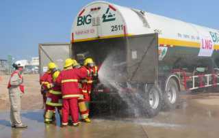 vehicle recovery team, include the external supporting from Map Ta Phut Fire department team. The purpose of drill was to practice the LNG truck recovery, spill handling and emergency communication procedure. The simulated location was set up at the area next to BIG’s Hydrogen plant. This event was successfully executed with good collaboration from BIG and all involving parties such as PTTLNG (our business partner), Map Ta Phut Fire department and nearby communities which is another proven step of BIG’s leadership in sustainability development from leading-edge innovation and world-class safety practice for industrial gas business.