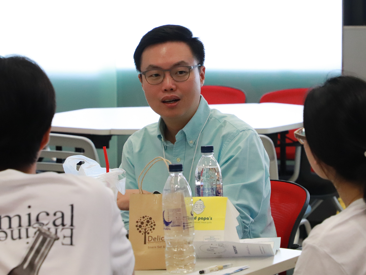 At the Chem Eng Round Table 2024, alumni from the department shared their work experiences with current undergraduate students. This event aimed to provide students with insights into various career paths and assist them in making informed decisions about their future careers. Mr. Pongsak Luarngchindarat, Climate Technology Deputy Director and an alumnus of the Faculty of Engineering, provided career advice and guidance to the attendees. BIG also set up a booth to introduce the company and offer job opportunities to interested students at the 100-Year Engineering Building.