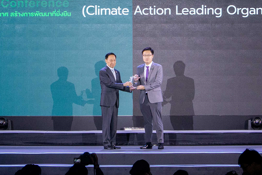 คุณพงษ์ศักดิ์ เหลืองจินดารัตน์ Senior Business Development Division Manager ตัวแทนผู้บริหารบีไอจี รับมอบมอบโล่ประกาศเกียรติคุณ องค์กรผู้นำด้านการจัดการก๊าซเรือนกระจก จากพลตำรวจเอก พัชรวาท วงษ์สุวรรณ รองนายกรัฐมนตรีและรัฐมนตรีว่าการกระทรวงทรัพยากรธรรมชาติและสิ่งแวดล้อม ในการประชุมภาคีการขับเคลื่อนการปฏิบัติงานด้านการเปลี่ยนแปลงสภาพภูมิอากาศของไทย ครั้งที่ 2 (Thailand Climate Action Conference: TCAC 2023) ณ Plenary Hall ศูนย์การประชุมแห่งชาติสิริกิติ์ เมื่อวันที่ 7 ตุลาคม 2566 ที่ผ่านมา