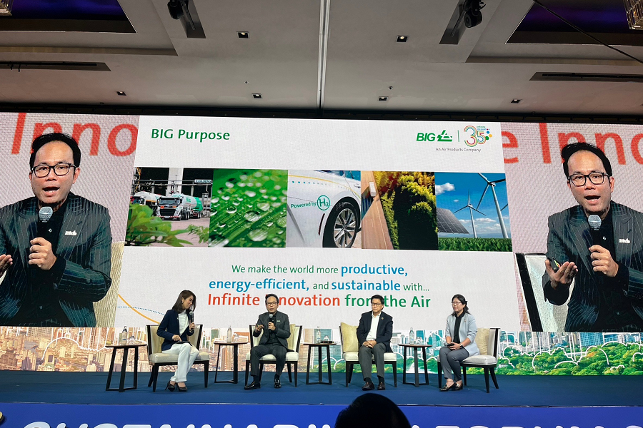 คุณปิยบุตร จารุเพ็ญ กรรมการผู้จัดการ บีไอจี กล่าวในวงเสวนาว่า บีไอจีเน้นย้ำการดำเนินธุรกิจที่ให้ความสำคัญกับความยั่งยืนโดยยึดแกนหลักจากบริษัทแม่ Air Products ได้แก่ Grow Conserve Care โดยเน้นสร้างการเติบโตกับพันธมิตรทางธุรกิจและทุกภาคส่วนไปด้วยกัน รวมถึงมีเป้าหมายด้านการลดการปลดปล่อยคาร์บอนสุทธิเป็นศูนย์ หรือ Net Zero อย่างชัดเจน ซึ่งบีไอจีและทีซีพี ต่างมีเป้าหมายและร่วมผลักดันคู่ค้าและพันธมิตรทางธุรกิจในการลดการปลดปล่อยคาร์บอนเพื่อสร้างสังคมคาร์บอนต่ำร่วมกัน และสุดท้ายคือการดูแลภาคสังคมและสิ่งแวดล้อมที่บีไอจีให้การสนับสนุนมาอย่างต่อเนื่อง คุณปิยบุตรยังทิ้งท้ายถึงผู้เข้าร่วมสัมมนาว่า ความยั่งยืนคือโอกาส ในการช่วยโลกให้บรรลุ Net Zero ร่วมกัน รวมถึงการสร้างการเติบโตร่วมกับพันธมิตรทางธุรกิจผ่าน Ecosystem โดยนำเอาความเชี่ยวชาญของแต่ละองค์กรมาผนวกรวมด้วยเป้าหมาย (Purpose) เดียวกัน จะเป็นหนทางที่ทำให้ประเทศและโลกก้าวผ่านปัญหา Climate Change ได้อย่างรวดเร็วและยั่งยืน