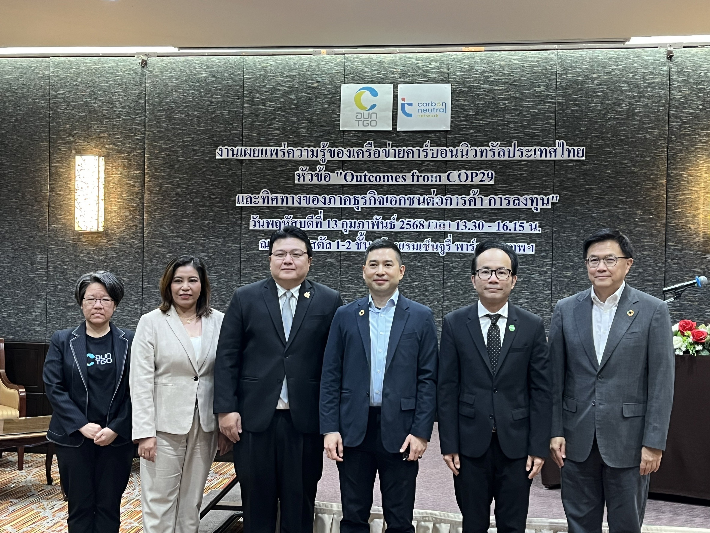 งานเผยแพร่ความรู้ของเครือข่ายคาร์บอนนิวทรัลประเทศไทย (Thailand Carbon Neutral Network) ร่วมกับองค์การบริหารจัดการก๊าซเรือนกระจก (องค์การมหาชน) หรือ อบก. ในครั้งนี้จัดขึ้นภายใต้หัวข้อ “Outcomes from COP29 และทิศทางของภาคธุรกิจเอกชนต่อการค้า การลงทุน” ซึ่งเน้นย้ำการเตรียมความพร้อมของประเทศไทยในการเข้าถึงแหล่งเงินทุนด้านการลดก๊าซเรือนกระจกและการปรับตัวขององค์กรชั้นนำในประเทศ จัดขึ้น ณ โรงแรมเซ็นจูรี่ พาร์ค กรุงเทพฯ